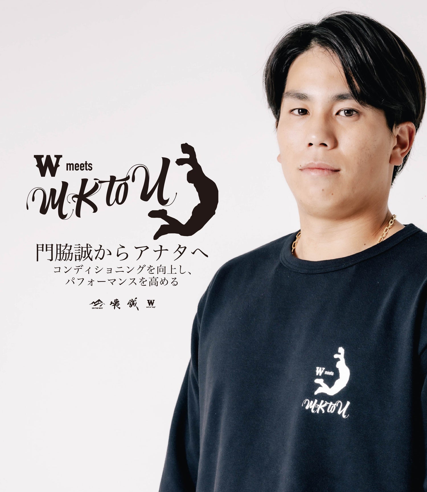 コンディションを整えるというスポーツ選手としての基本に焦点をおき、「PlaX™」素材の選別、普段使いを意識したボディ作り、「MKtoU(エムケートゥーユー:門脇誠選手からアナタへ)」というメッセージと、2年目のシーズンで幾度となく安打を奪った”美技”、「忍者守備」「門脇たまらん」と称されたシルエットをデザイン、全ての工程を門脇選手にご対応頂きました。